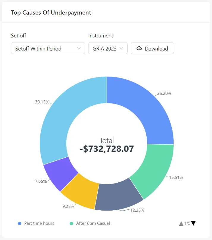 Notre solution Modern Award & EA Compliance automatise les révisions de paie historiques et continues, facilitant ainsi la conformité aux récompenses modernes, aux EA et aux accords de flexibilité individuels. En fournissant une visibilité sur les écarts salariaux et leurs causes sous-jacentes, les employeurs peuvent prendre des décisions éclairées et s'assurer que les employés sont payés correctement, conformément à leurs instruments industriels.